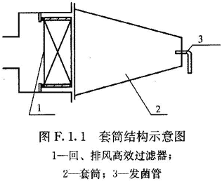 套筒(測(cè)定回、排風(fēng)高效過(guò)濾風(fēng)口時(shí)需要使用,罩住整個(gè)入口,使檢漏范圍包括邊框,長(zhǎng)度應(yīng)使通過(guò)氣流時(shí)間為0.5s~1s,見(jiàn)圖F.1.1)。